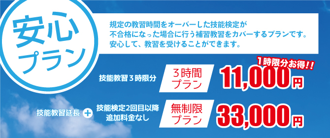 ※安心プランの無制限プランは2回目以降の技能検定を保証します。学科試験の保証はありません。